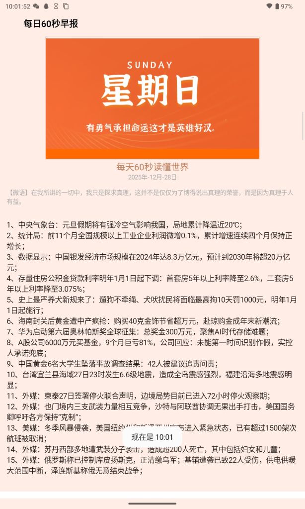 2.日常生活好工具,通过每天60秒功能快速阅读每天新闻热点,用步数助手快速完成“数字目标”,番茄时钟提升效率,除此之外还有美食食谱、屏幕手电、手持弹幕、无广详细天气预报、极速备忘录等